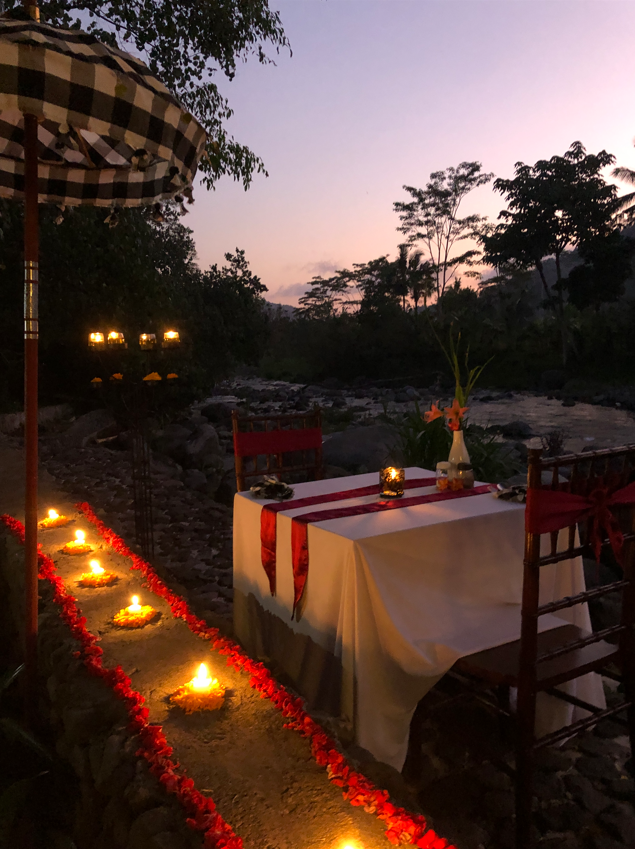 Wake up to the sounds of nature, chirping birds, and the gentle flow of the Unda River. Enjoy peaceful mornings sipping tea with your partner or candlelit dinners under the stars, surrounded by Bali’s lush greenery.